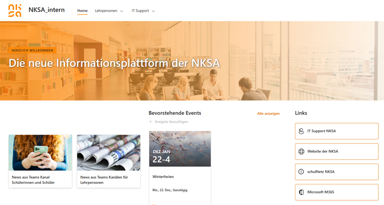 Die NKSA und AME erhalten je ein SharePoint-Dashboard, welches zentrale Informationen übersichtlich für Schüler:innen und Lehrpersonen bündelt. Das Berechtigungskonzept stellt klar geregelte Zugriffe sicher. Mit der neuen Nomenklatur für Dateien und dem übersichtlichen Ordnungssystem profitieren die Schüler:innen und Mitarbeitenden von einer einheitlichen, nachvollziehbaren und leicht zugänglichen Ablagestruktur.